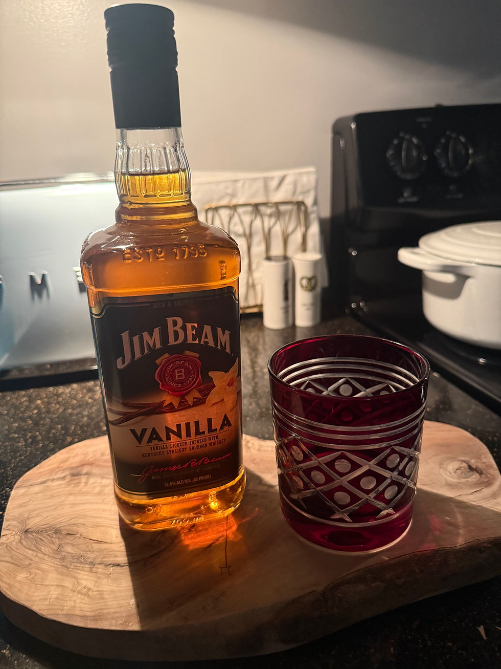 This Vanilla Bourbon is a fun choice from Jim Beam. I like that you can drink it on the rocks without anything. It's sweet and easy. Something that is perfect if you love a little whiskey after dinner. Often times, when I'm at the liquor store I'm looking for something to change things up. This definitely gave me something new to sip and relax with. Plus a couple cocktail ideas.