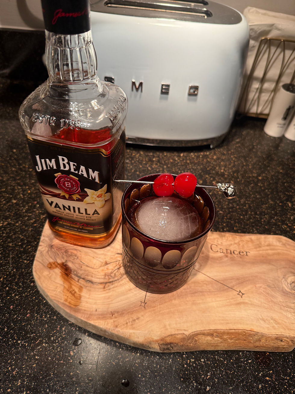 In an old fashioned glass with ice, pour bourbon. Top with coke. Garnish with maraschino cherries.